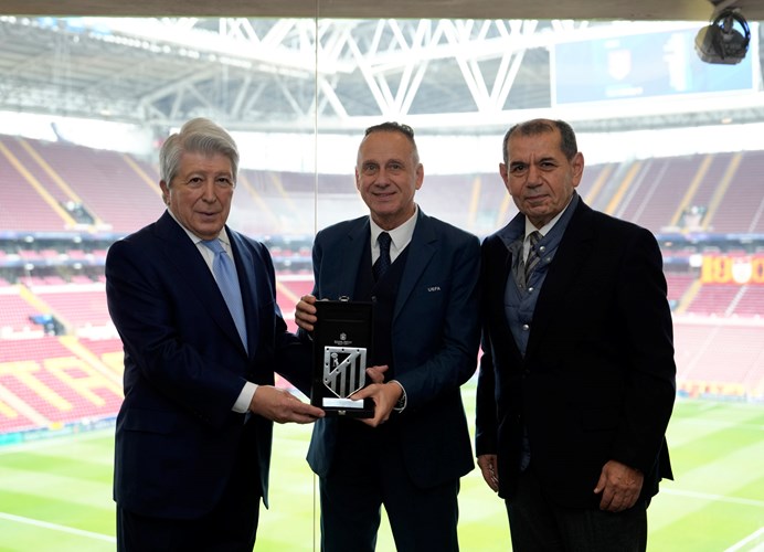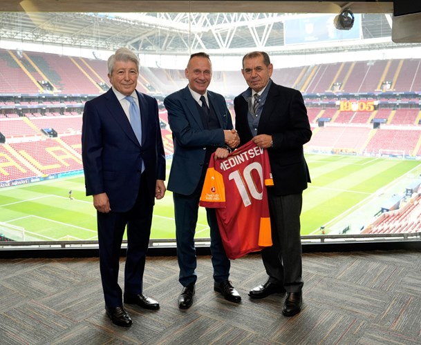 Arda Turan, Galatasaray'da yetişmiş bir oyuncuydu. Galatasaray'ın da elçisi olarak İspanya'da bulundu. Kendisi iftihar ettiğimiz bir oyuncumuz. Dolayısıyla iki kulübün birbirine yakınlığı, kardeşliği bu sayede de pekişmiş oldu. İnşallah bundan sonraki dönemlerde de yine Atletico ile her zaman Şampiyonlar Ligi'nde oynamayı bekliyoruz."